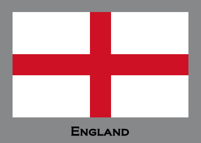 The English flag is a red cross on a white background. This cross is the cross of Saint George, who is the patron saint of England. Other symbols used for England are a red rose and three lions.